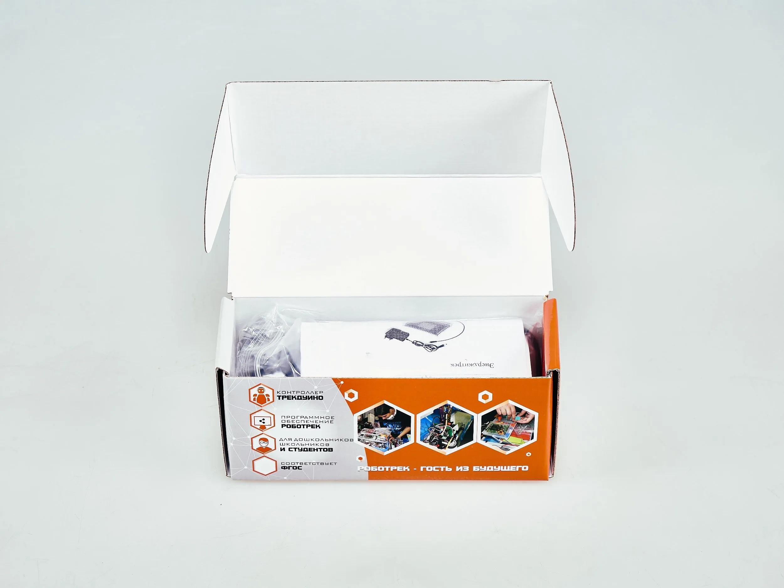 Будет полезен для разработки масштабных проектов с использованием образовательных наборов «Роботрек». На корпусе имеются отверстия для соединения с механическими блоками конструктора «Роботрек», единый разъем для подключения зарядного устройства и потребителей питания, внутри корпуса имеется защитная подложка.