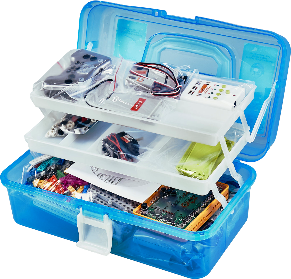 5. Две материнские платы (контроллера), 1 прошитая четырьмя алгоритмами с возможностью дистанционного управления и 1 программируемая (визуализированная среда РОБОТРЕК ПО).