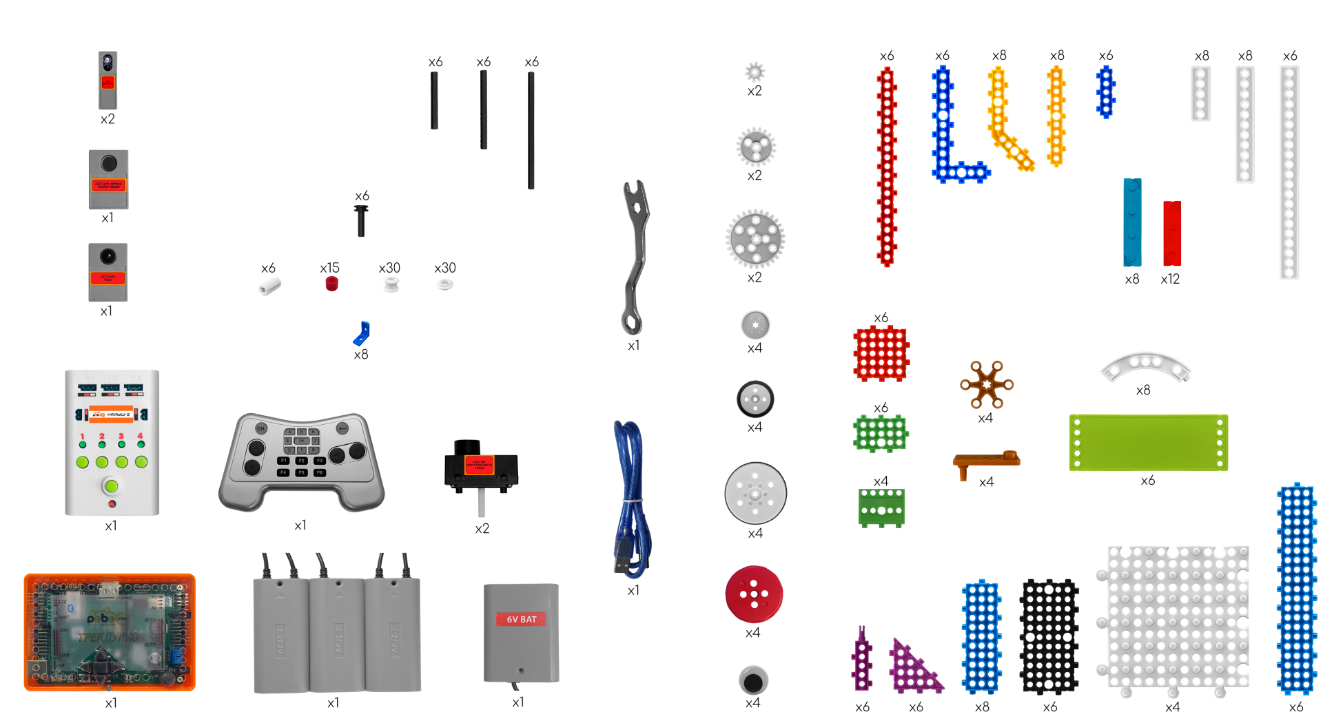 7. Набор различных датчиков: 2 инфракрасных датчика, 1 датчик приема ДУ, 1 датчик звука.