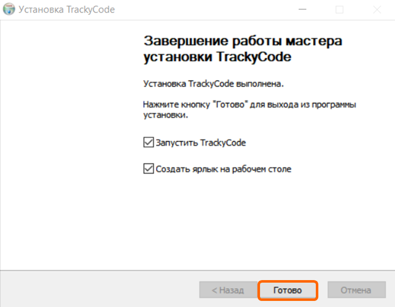10. После завершения процесса установки откроется программа TrackyCode, и на Рабочем столе появится ярлык «TrackyCode», с помощью которого и следует запускать приложение: