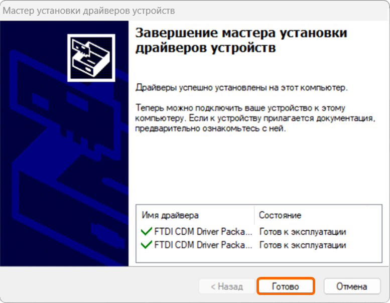 9. После установки FTDI драйвера откроется окно установки TrackyCode, необходимо нажать кнопку «Готово».