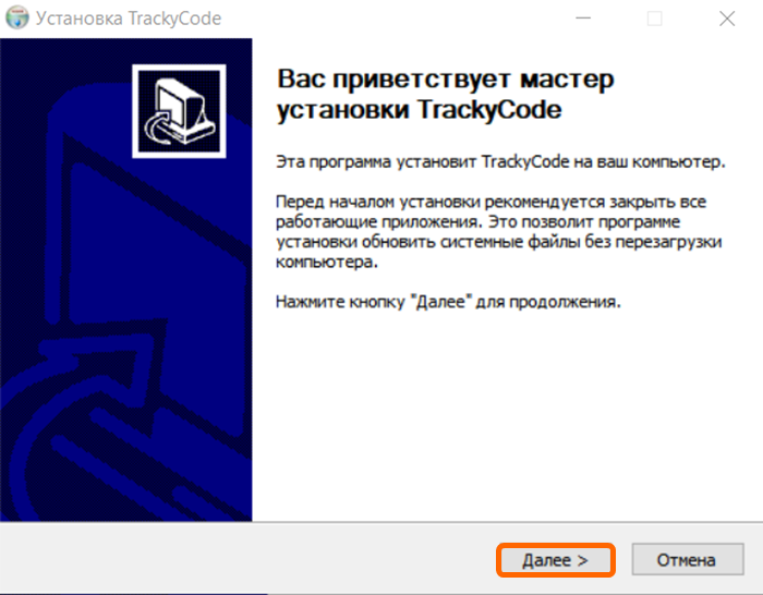 1. Скачайте установочный файл «TrackyCode.exe».2. Запустите файл «TrackyCode.exe».
