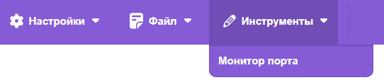 Интерфейс визуального языка программирования позволяет с помощью блоков запрограммировать робототехнические установки с датчиками и исполнителями: