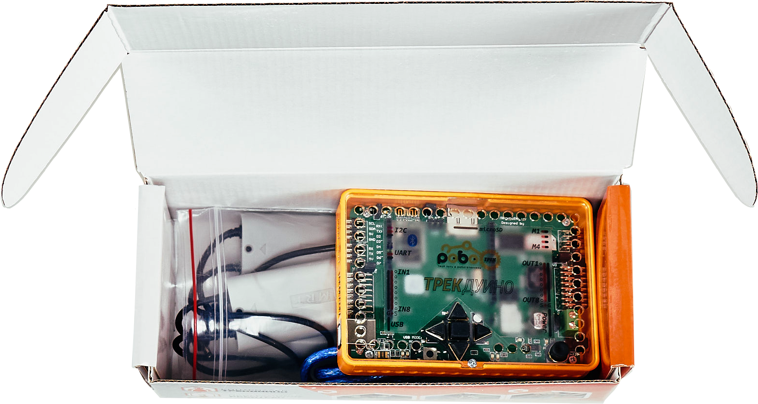 Набор для проектной деятельности по робототехнике «РОБОТРЕК ТРЕКДУИНО» предназначен для проектной деятельности и является важным элементом, который позволяет сделать собранную модель робота интерактивной. В нем есть все необходимое для реализации различных проектов детей. Набор представляет собой комплекс устройств с возможностью многократного перепрограммирования в специальной программной среде (Arduino С). Набор совместим с пластиковыми блоками Робототехнических конструкторов РОБОТРЕК.